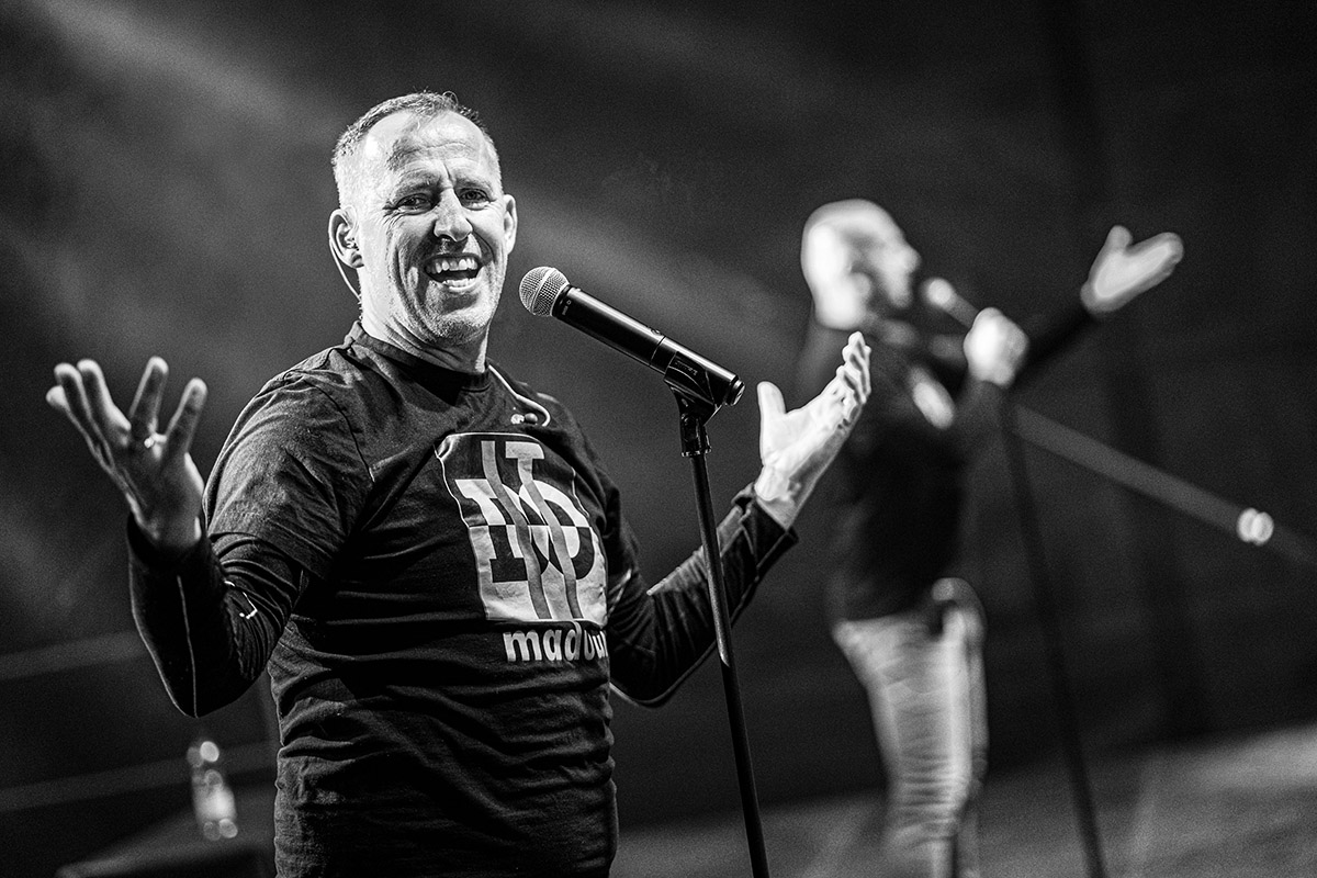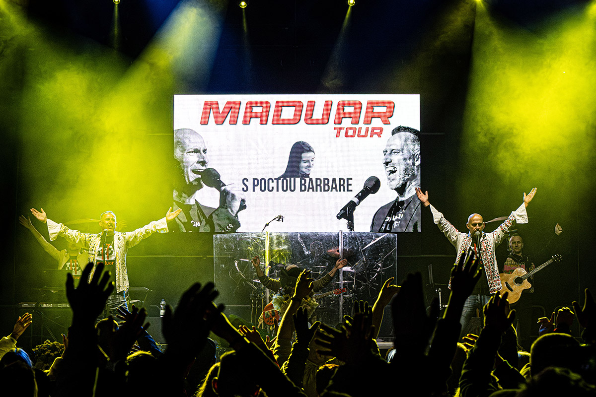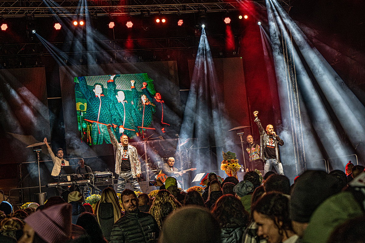 Na akciu sme priniesli skrátenú, hodinovú verziu nášho koncertného programu s kapelou a vďaka LED stene sme mohli zosynchronizovať živý prejav na pódiu s dianím na nej. Spojili sme tak koncertný zážitok s návratom v čase.